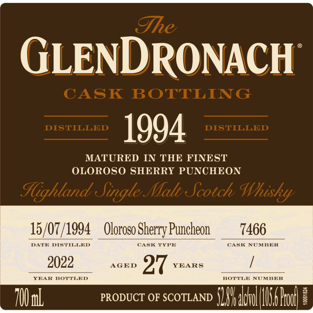 Glendronach 27 Year Old 1994 Cask #7466 Single Malt Scotch Whisky