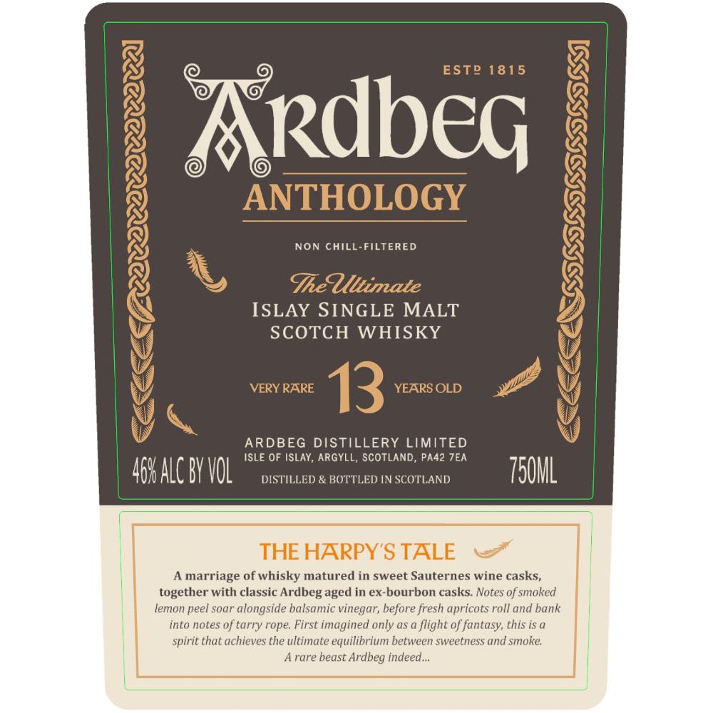 A first for the Distillery and the first in this Anthology Collection, this spirit is the outcome of a battle between smoke and sweet. Ardbeg’s unmistakable character tussles with the richness of the Sauternes casks. Inspired by the seldom-seen Harpy - a winged beast said to inhabit Islay - this bottled in an ode to the rarest and most.