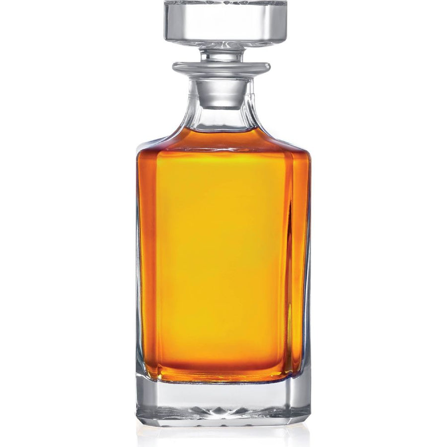 This 750ml (25.36oz) whiskey decanter features a solid glass topper and is individually boxed for safe transportation. Handmade with lead free glass and an air tight solid glass stopper, this decanter is both practical and elegant. Measuring 9" x 4" x 4 " and weighing 3lbs, it is a perfect addition to any home bar. And best of all, it is dishwasher safe for easy cleaning. No contents are included, but the possibilities are endless with this stunning decanter. Make it the perfect gift with Customizable Engraving Options